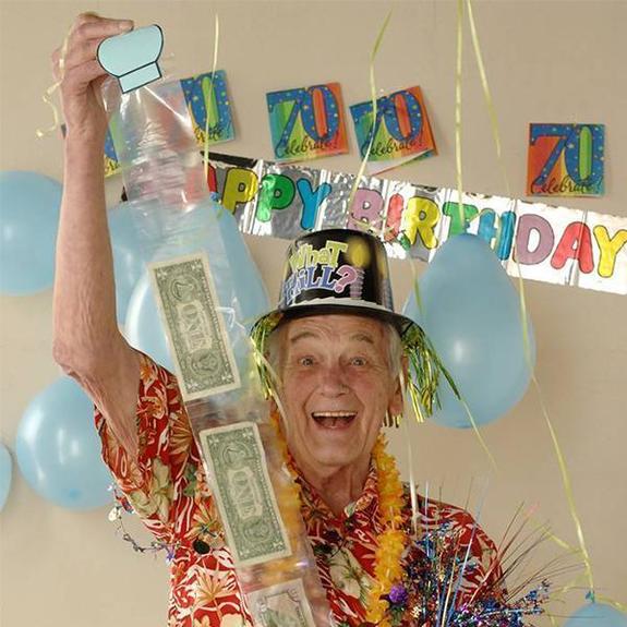 Hide a roll of money into the Cake ATM and put it inside the birthday cake, as the recipient lifts up the Happy Birthday sign or Candle on the top, the money will keep coming!
