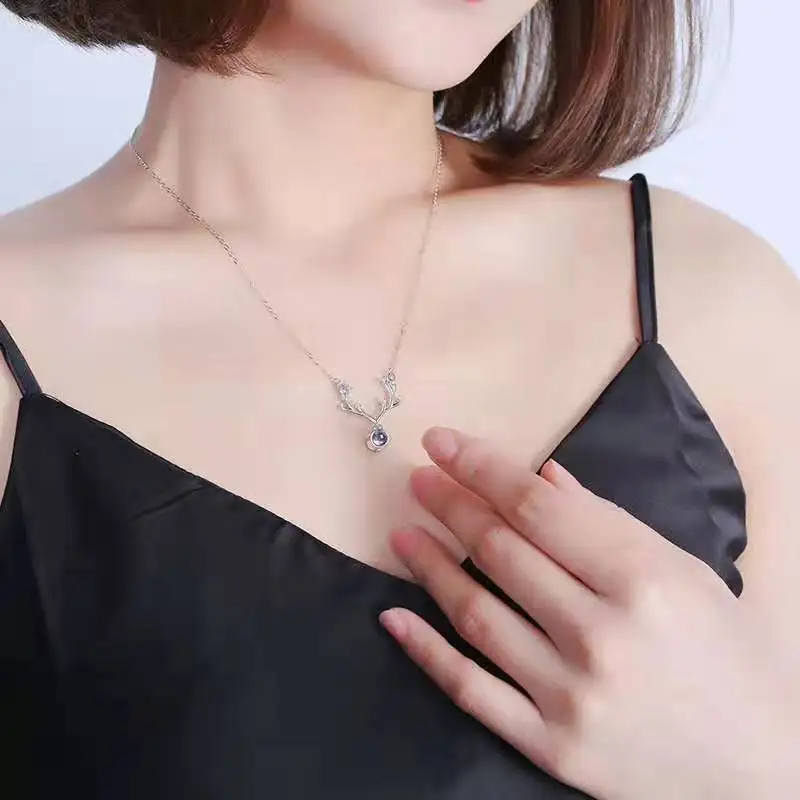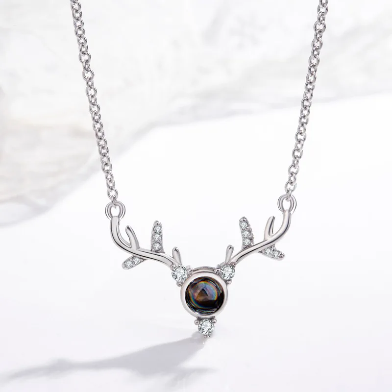 925 Silver Customized Antler Necklace: Projection Of "I LOVE YOU" In 100 Languages