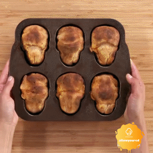 These little skull-shaped cakes will add some ghoulish delight to your Halloween table! The options are endless for what to make in this spooky design such as pizzas, jello, ice molds, lava cakes, and more!