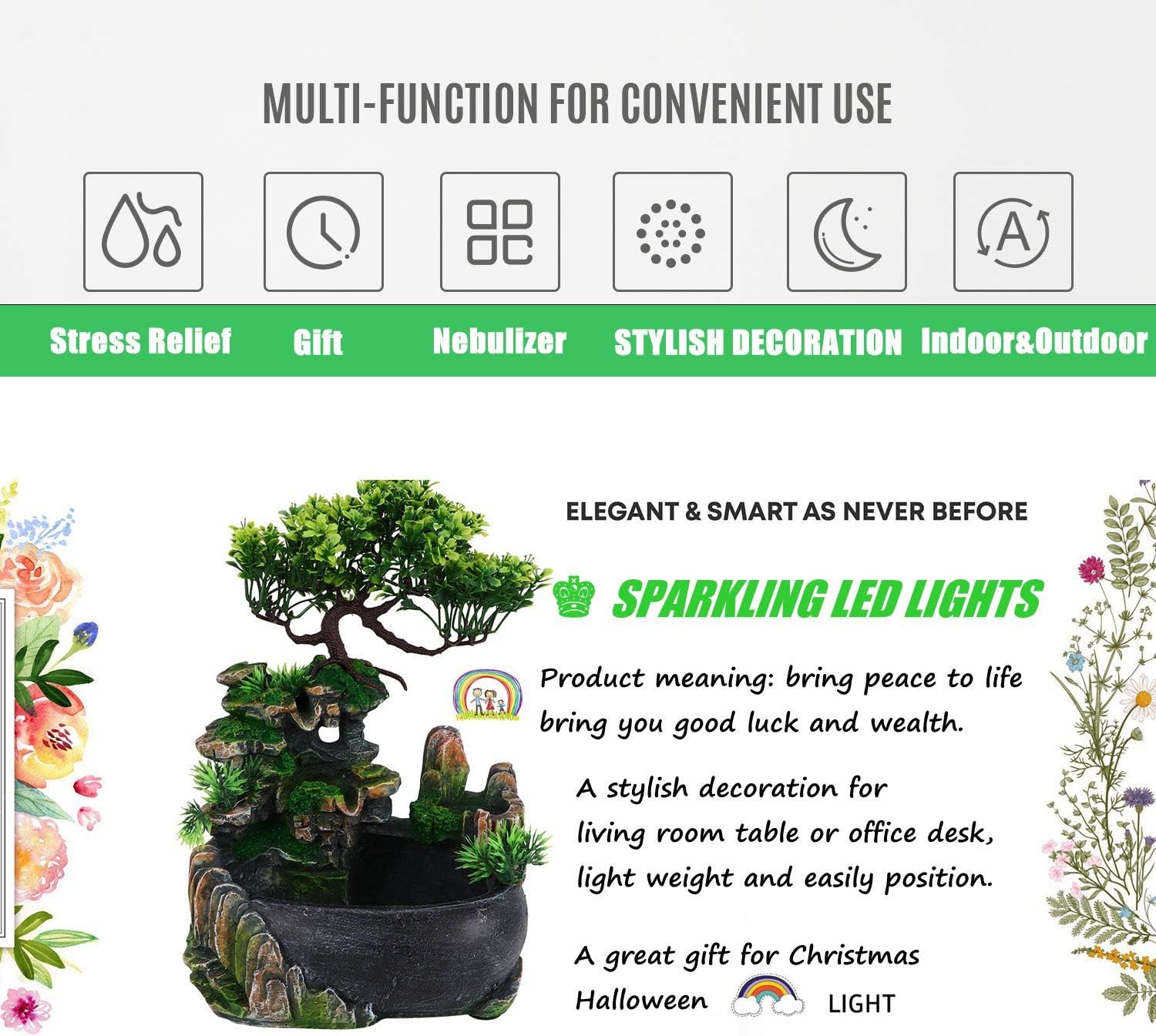 Our amazing and unique "Mystic Garden Tabletop Fountain" brings a serene zen feel to any room, adding a touch of sophistication to any tabletop, bathroom sink, dressing table or table, creating a gentle, soothing sound of water. In fact, you will listen to the sounds of a waterfall crashing down onto the tiers below as they gently rock you to sleep or bring you a comforting stress relief...