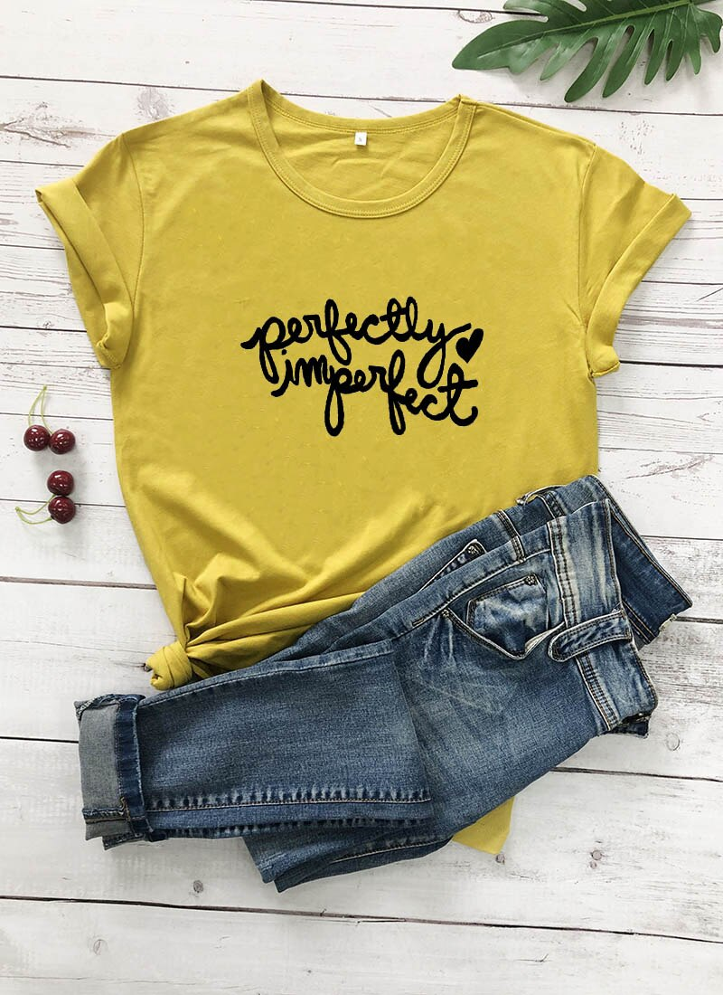 Funny letter print T-shirt features "Perfectly Imperfect", loose fit with casual style, super soft fabric and well-made quality...