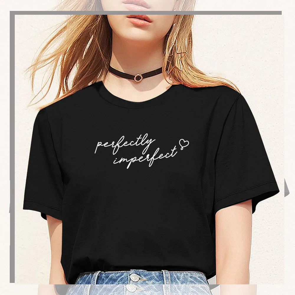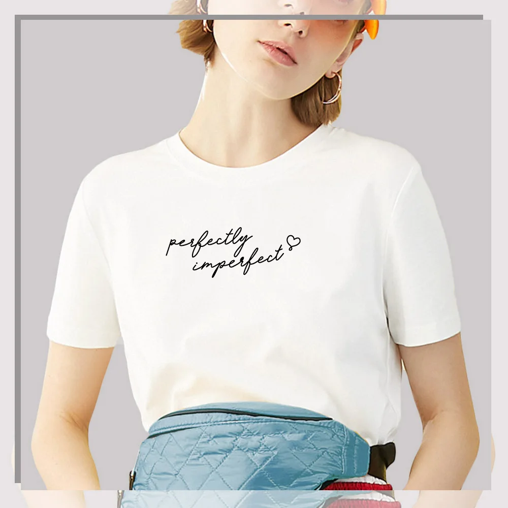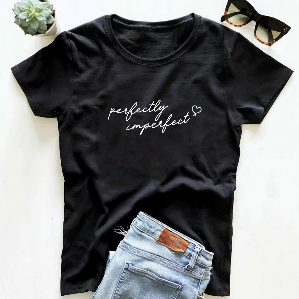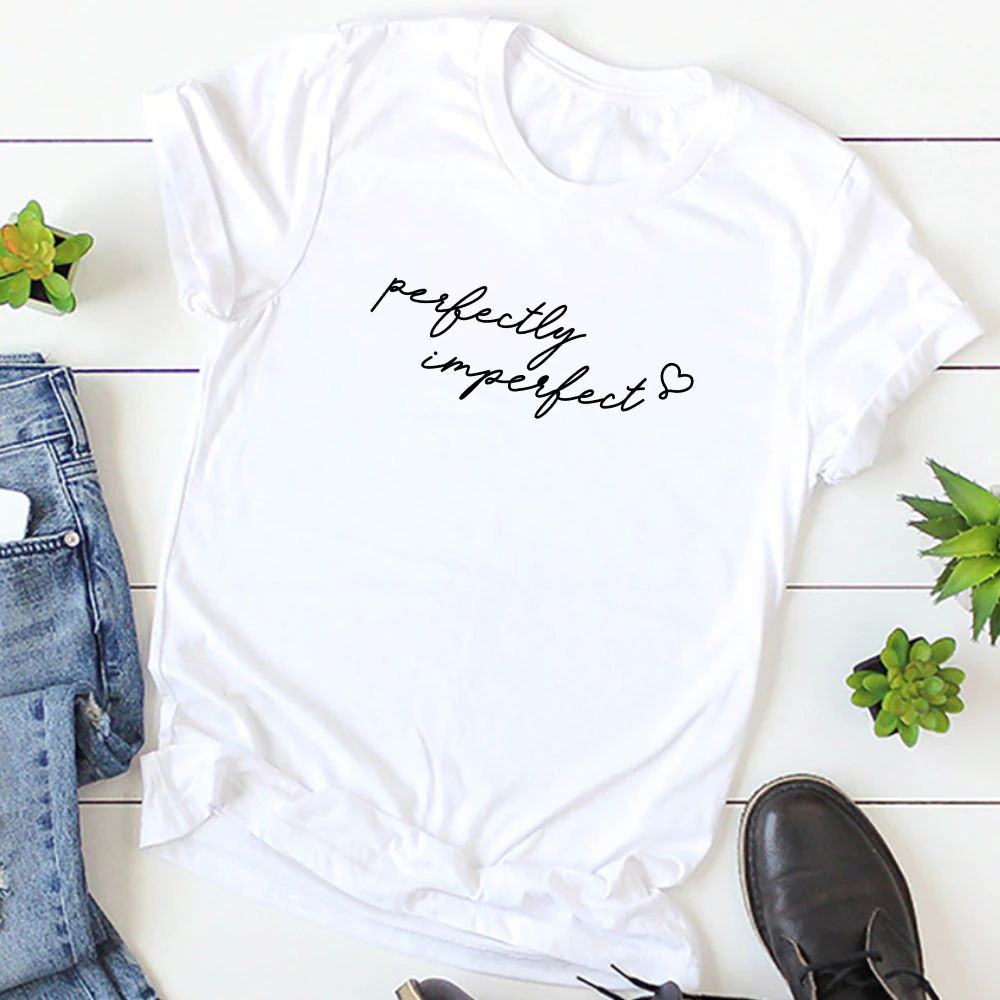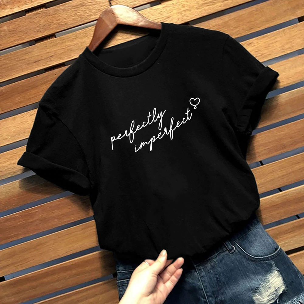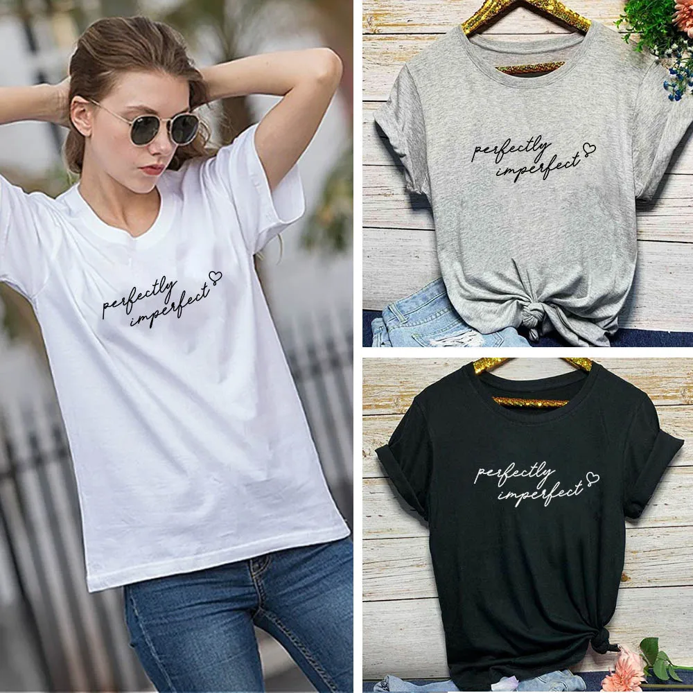 Funny letter print T-shirt features "Perfectly Imperfect", loose fit with casual style, super soft fabric and well-made quality... You can layered this tee with almost any outfit for a casual day outing or semi-formal night event.