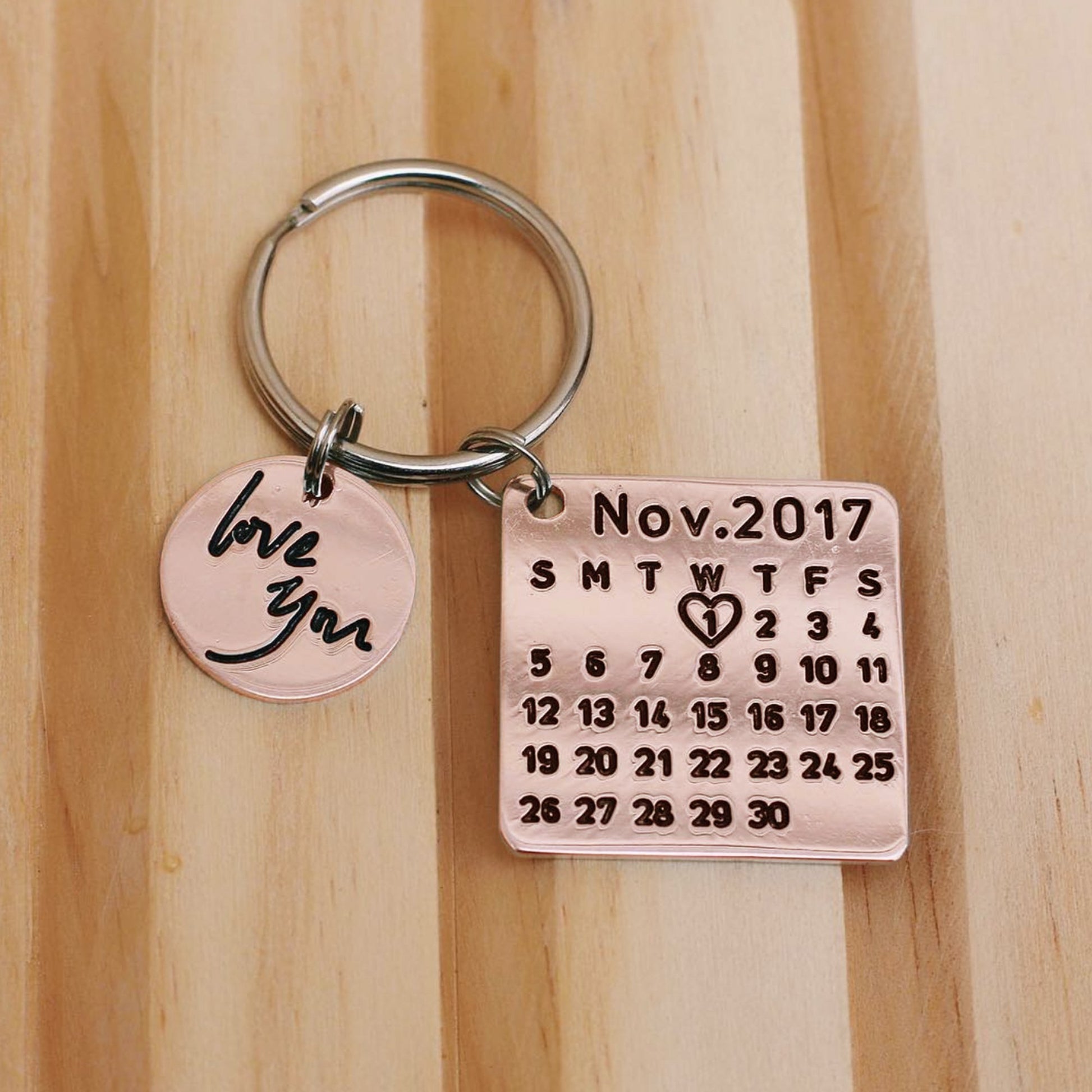 Our hand-stamped Calendar Keychains are a wonderful way to remember the special date of an anniversary, birthday, wedding or even a first date or kiss. We can guarantee your partner will love it, or we’ll refund you!
