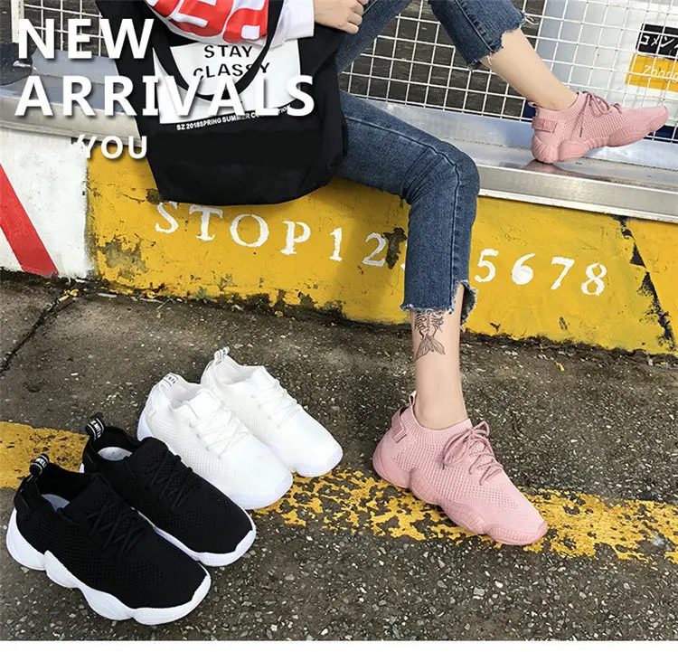Sneakers Mesh Lace-Up Stretch Fabric Knited For Women
