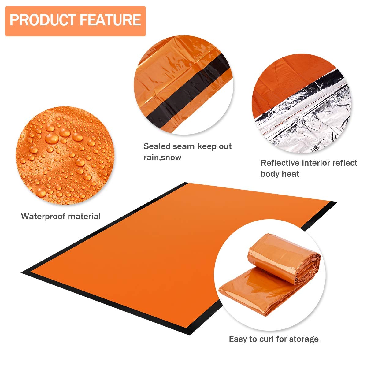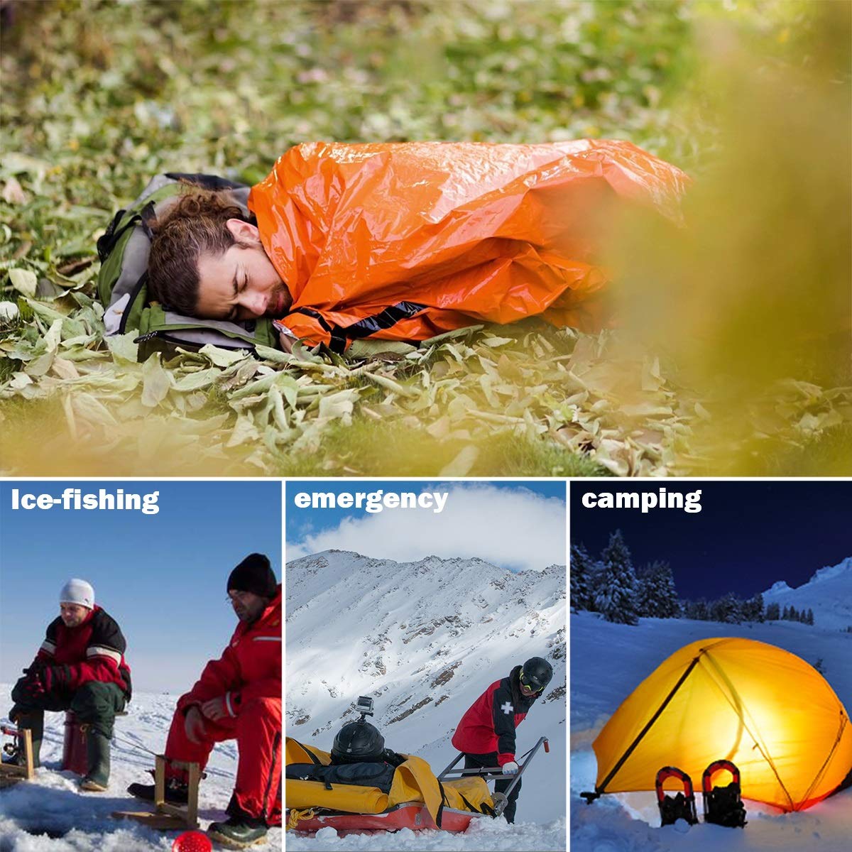 Furthermore, the bright orange color of the waterproof sleeping bag helps rescuers identify you with ease. The emergency sleeping bag serves as your emergency blanket, survival shelter; this is an emergency sack all-in-one.