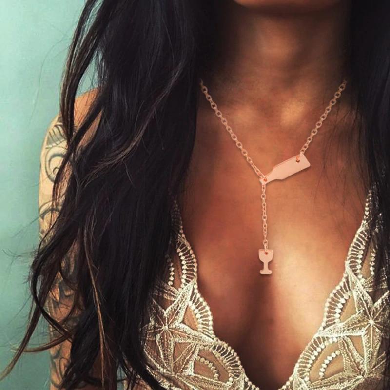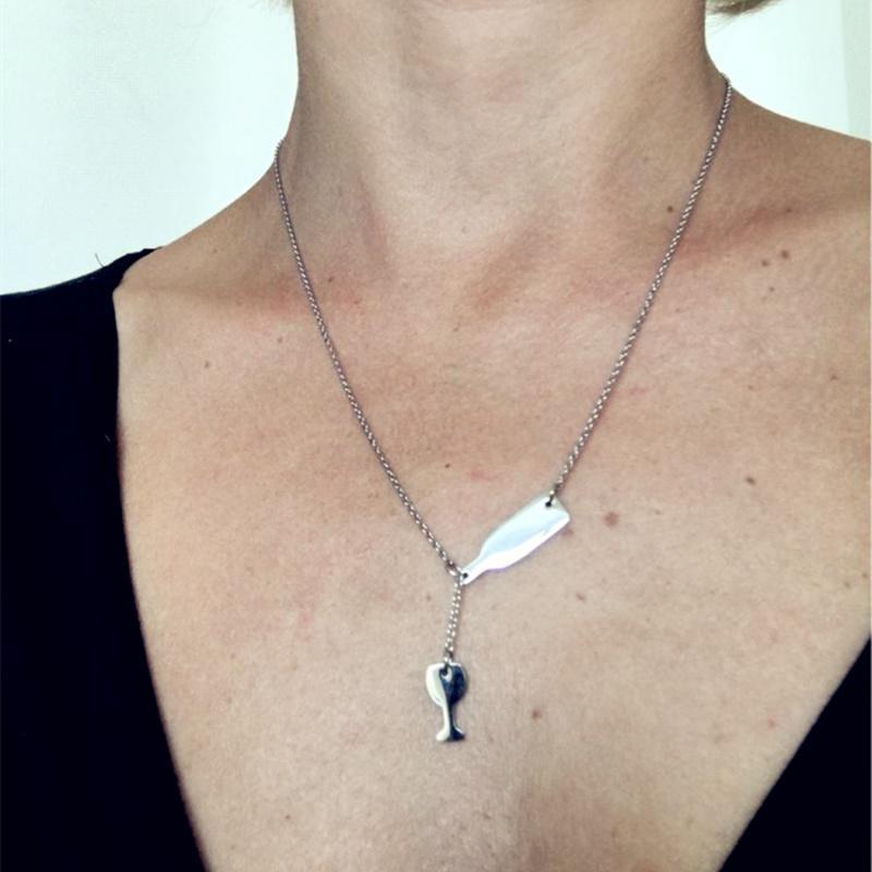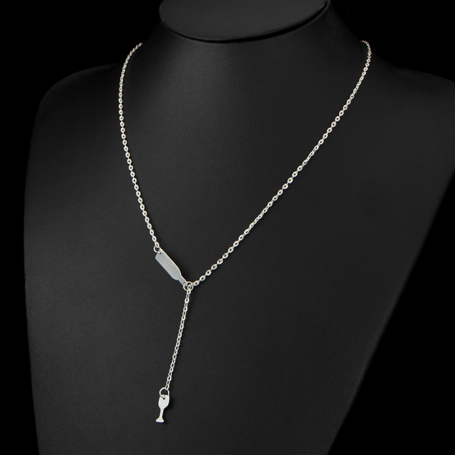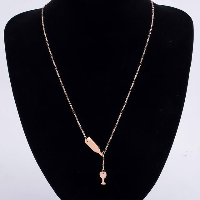 Wine Bottle and Glass Necklace