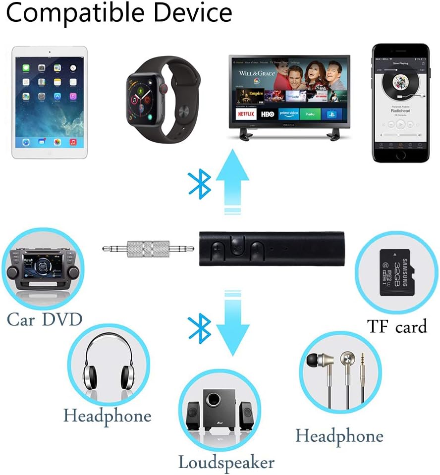 - DOUBLE LINKS & WIDE COMPATIBILITY: Portable Bluetooth Receiver can connect two Bluetooth devices at the same time.And it also could compatible with most smartphones and Bluetooth electronics, ideal for home or vehicle audio systems and wired headphones